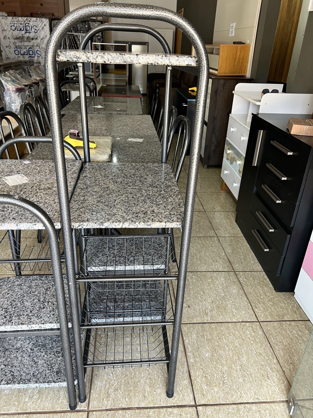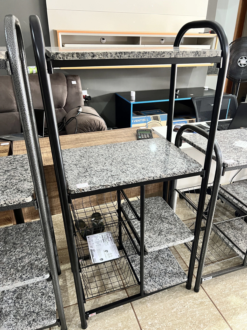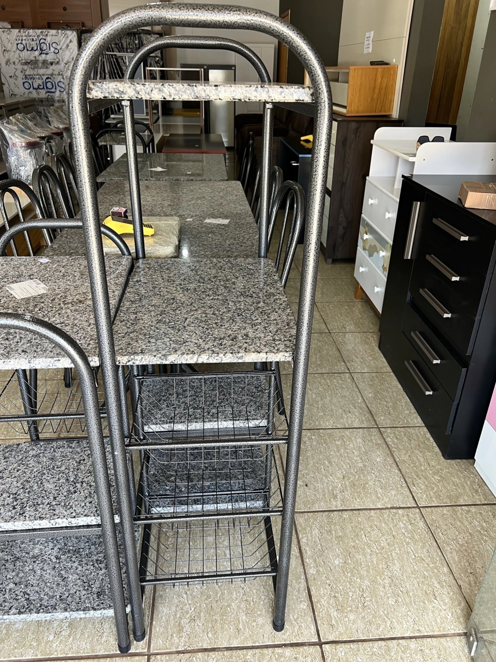 Com estrutura em aço carbono com pintura epóxi de acabamento fosco e tampos em granito natural, a Citrino combina resistência, durabilidade e fácil limpeza. Um toque de elegância que transforma o ambiente e otimiza o espaço com muita sofisticação.